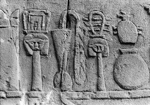 Sistrum players in a relief from the tomb of Nunuter, 6th dynasty, Giza, Egypt.