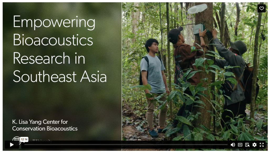 Click the link below to watch a video titled Empowering bioacoustics research in Southeast Asia, which explains efforts at the Center for Conservation Bioacoustics to create biacoustic networks across the region.