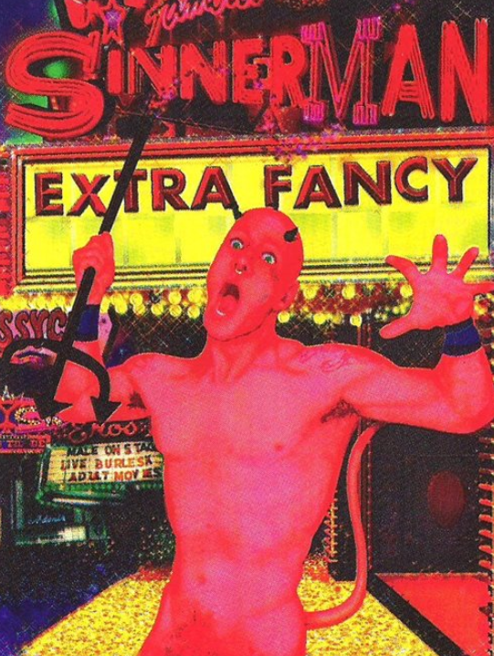 The surge of gay and lesbian visibility in 1990s popular culture revealed the limited discursive space within which queer identity was permitted to exist in mainstream U.S. society–a homonormative framework that Extra Fancy vehemently resisted. Brian Grillo’s representation of gay male identity served as a radical rejection of this structure. The band’s title track, Sinnerman, is a reinterpretation of the traditional gospel song Sinnerman, originally recorded by The Weavers in the late 1950s and later popularized by Nina Simone’s iconic 1960s rendition. Once emblematic of the liberationist Christian ethos that fueled the civil rights movement, the song was repurposed by Extra Fancy to subvert more dogmatic religious narratives and to spotlight systemic inequality through a distinctly queer lens.